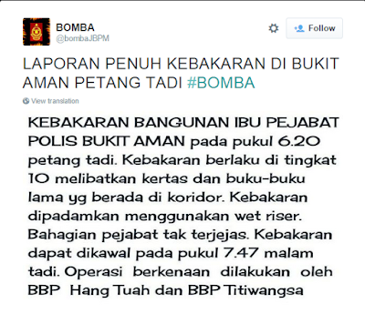 Kebakaran di Bukit Aman semalam menyaksikan ratusan mungkin ribuan komen-komen yang boleh sampai TIDAK MASUK AKAL. Antaranya yang paling popular ialah komen berkaitan bukti siasatan 1MDB.